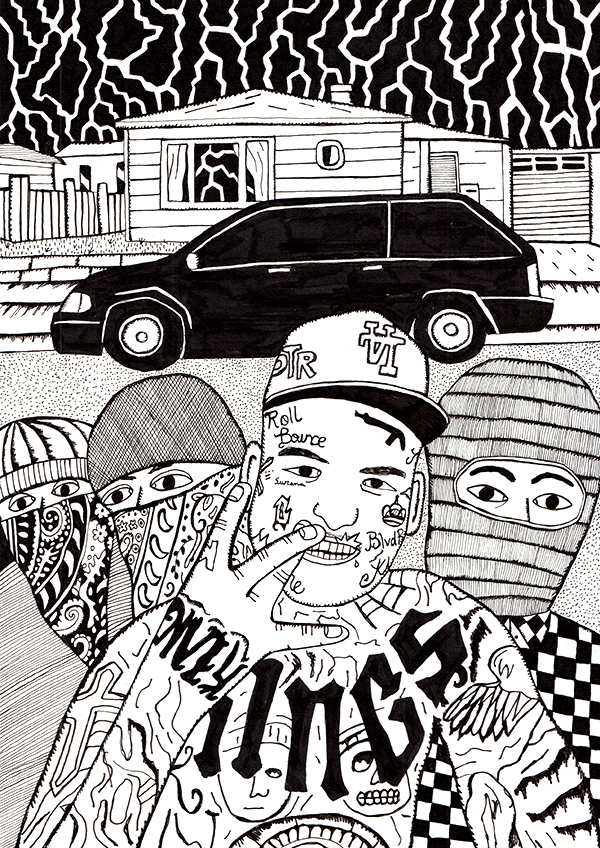 D’origine centre américaine, comme prêt de 80% des habitants de Baldwin Park – où il grandit, élevé par sa mère et sa grand-mère, dans l’un de ses vastes quartiers de mobile homes – Lefty devient adulte à l’époque où Blacks & Browns de YG et Sad Boy tente de tisser une passerelle entre communautés. Le lien entre ses origines et sa playlist n’a rien d’anecdotique : même lorsque la carrière de YG a amorcé sa phase descendante, il est resté une idole massive auprès des communautés chicanas, mexicaines, guatémaltèques – au point qu’on dise encore qu’aucune figure n’a été aussi populaire chez les jeunes hommes chicanos depuis Son Goku. Lefty ne copie pas YG, il en est l’héritier latéral, reprenant son flow et son articulation au point de parfois caler sa voix sur les fréquences de son timbre.